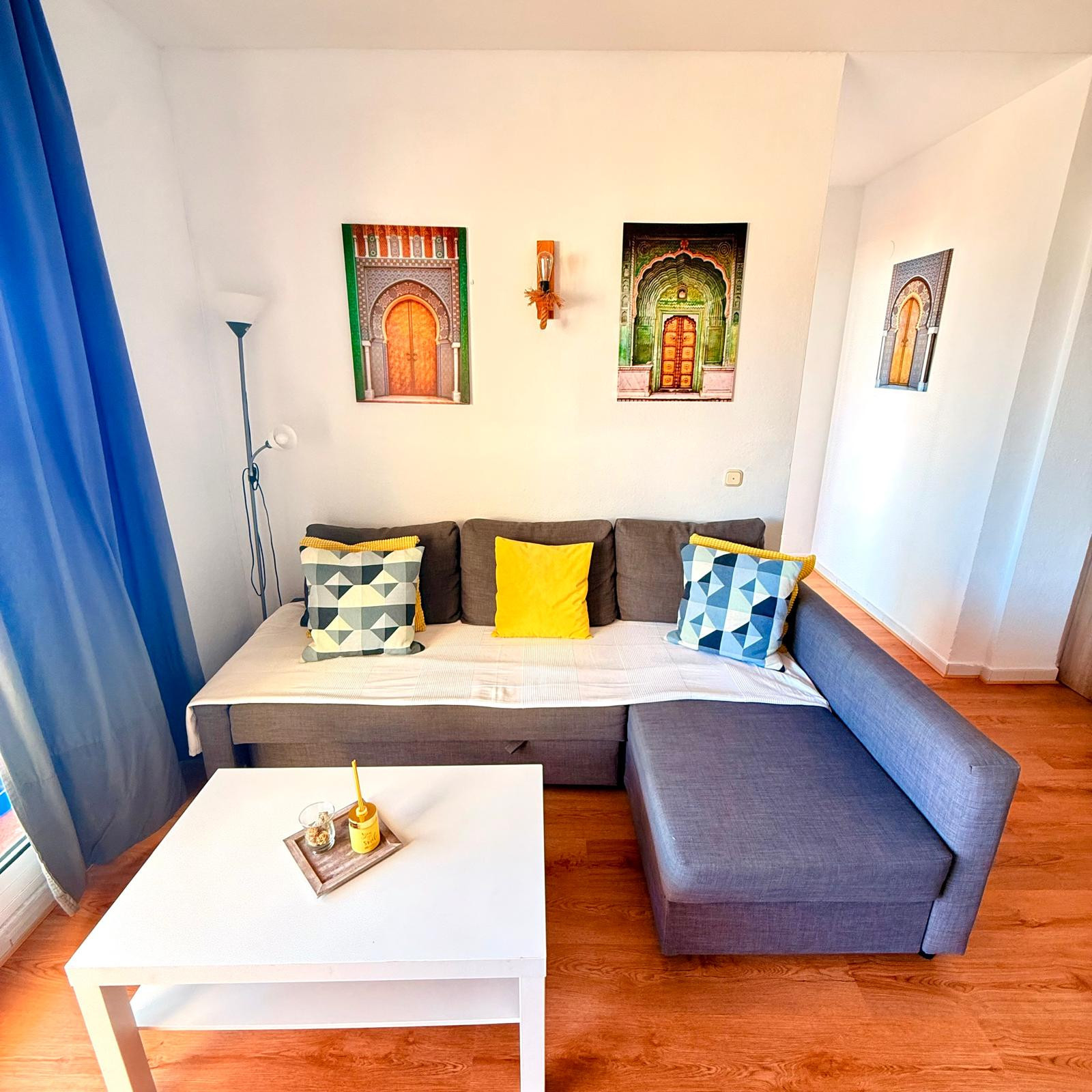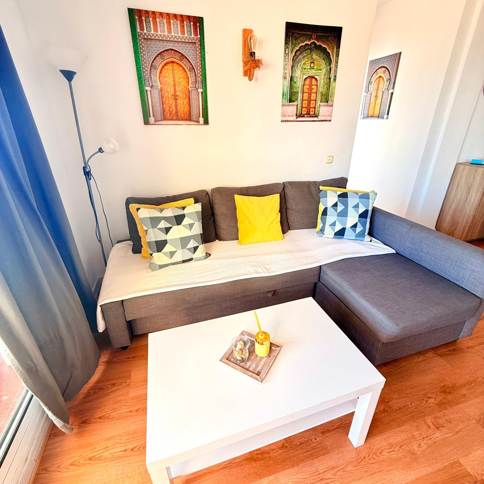 The train station for those arriving from the airport is located in the city centre of Arroyo de la Miel, also a short drive away. Those vacationing in Benalmádena each year are likely to repeat bookings in this complex, this specific apartment is particularly interesting since there is no lift in Pueblo Evita, the apartment benefits from being on the first floor, but having a spectacular open view of the town, mountain and sea.