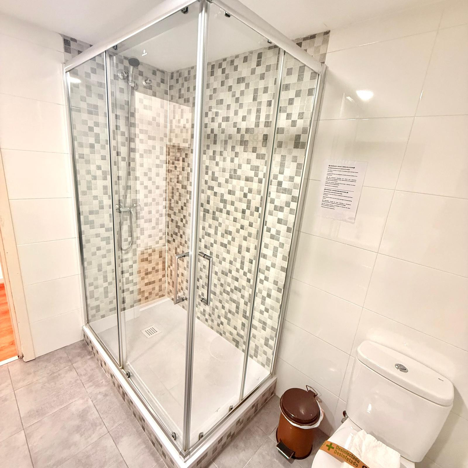 Just a few steps from the bedroom, there is a large recently modernised bathroom that is clean, bright and has a toilet and a shower with plenty of space for toiletries, etc.