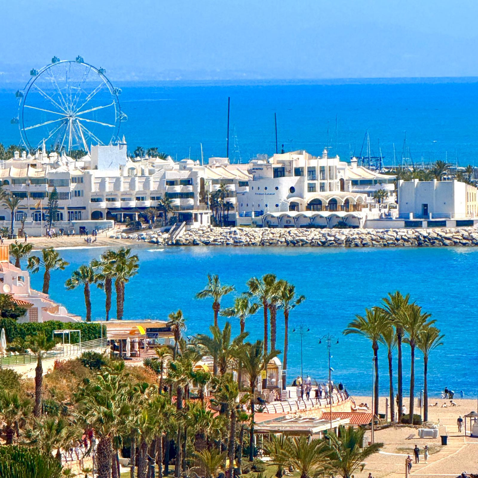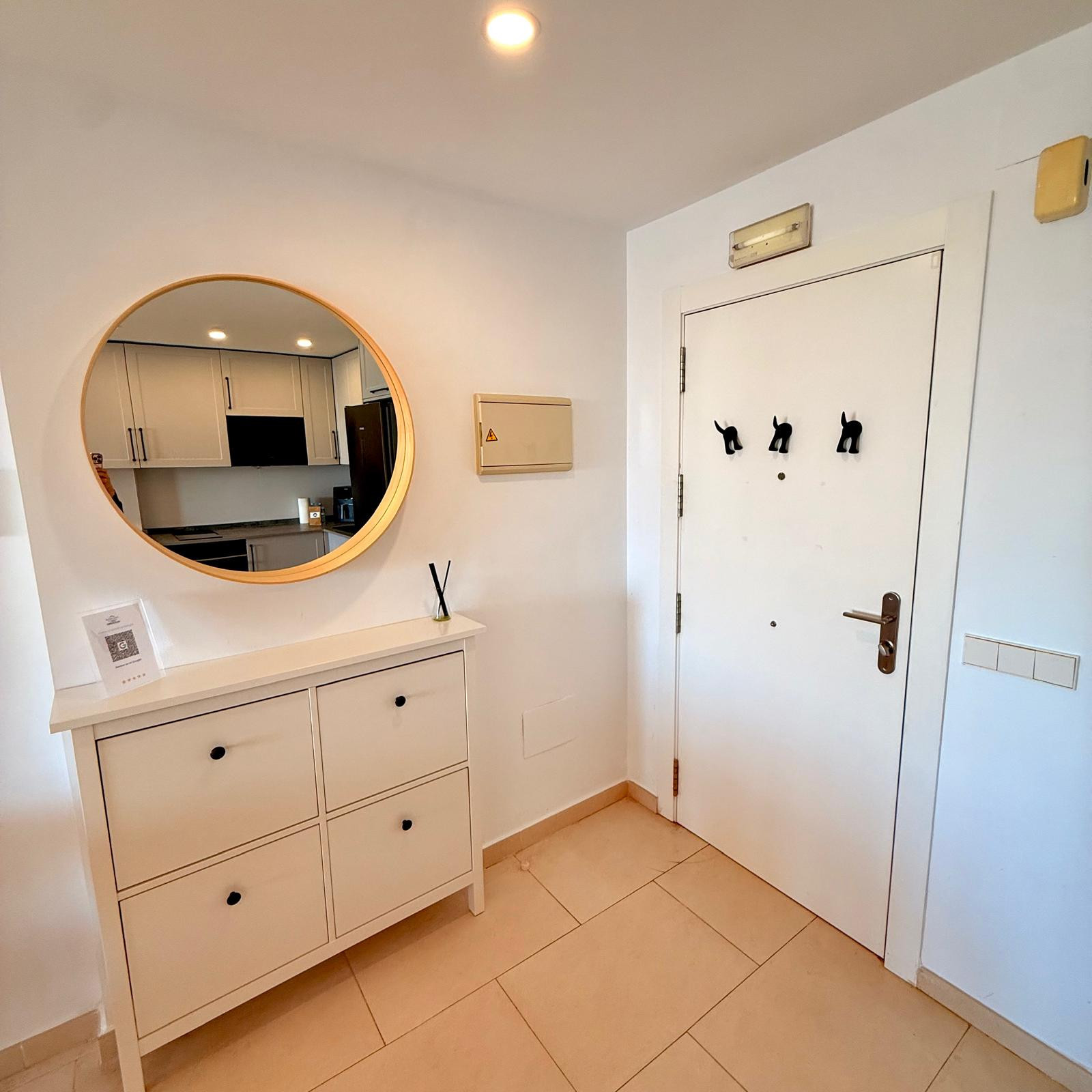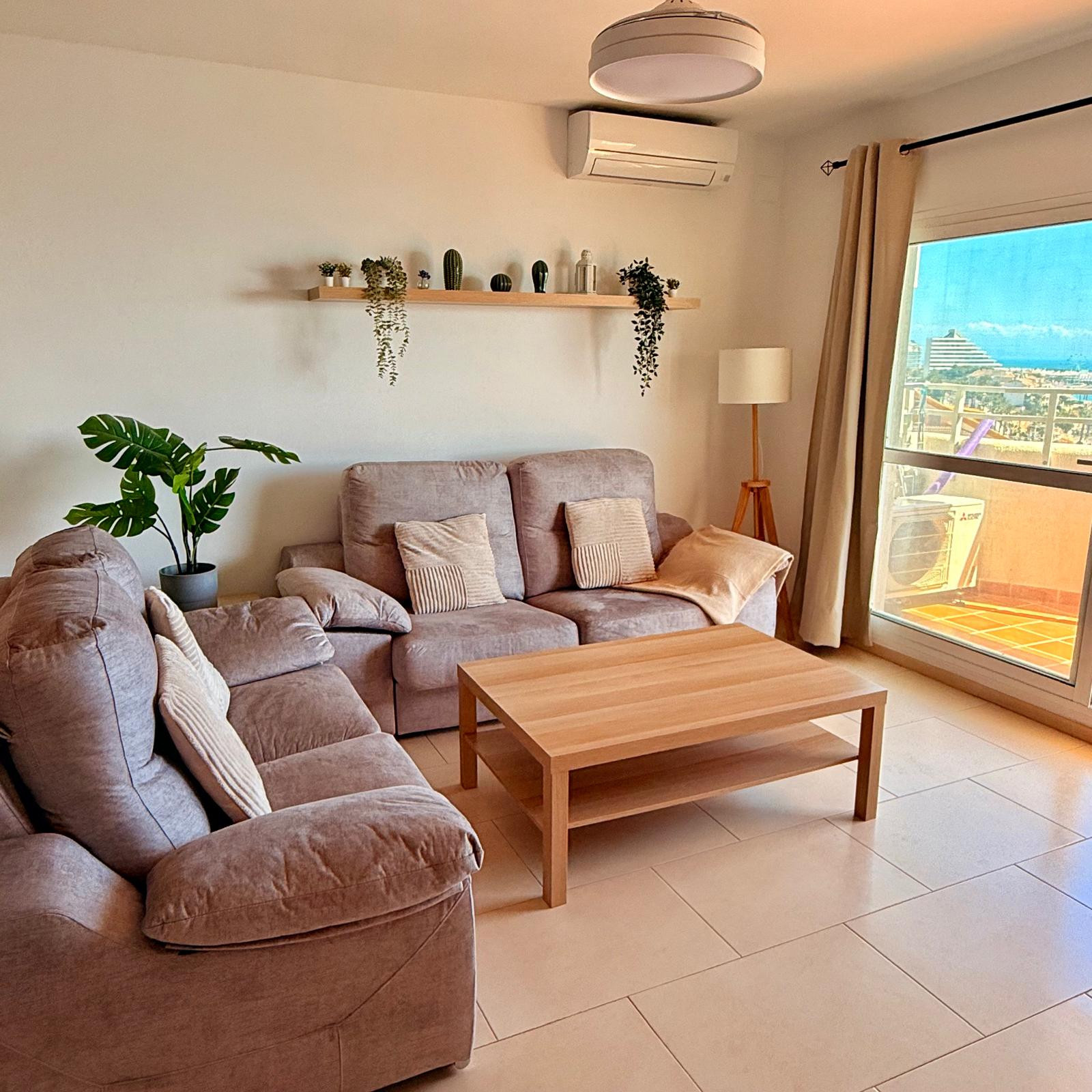 The train station for those arriving from the airport is located in the city centre of Arroyo de la Miel, also a short drive away. Those vacationing in Benalmádena each year are likely to repeat bookings in this complex, this specific apartment is particularly interesting since there is no lift in Pueblo Evita, the apartment benefits from being on the first floor, but having a spectacular open view of the town, mountain and sea.