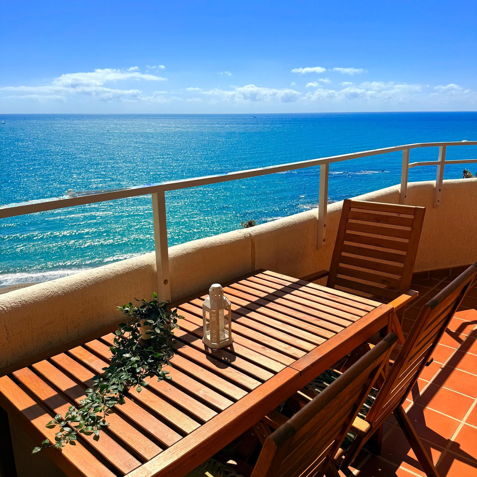 Large private terrace to enjoy at any time of the day where you will find an outdoor dining area for 4 people. Here you can enjoy spectacular views of the Mediterranean and the beach of Benalmádena.