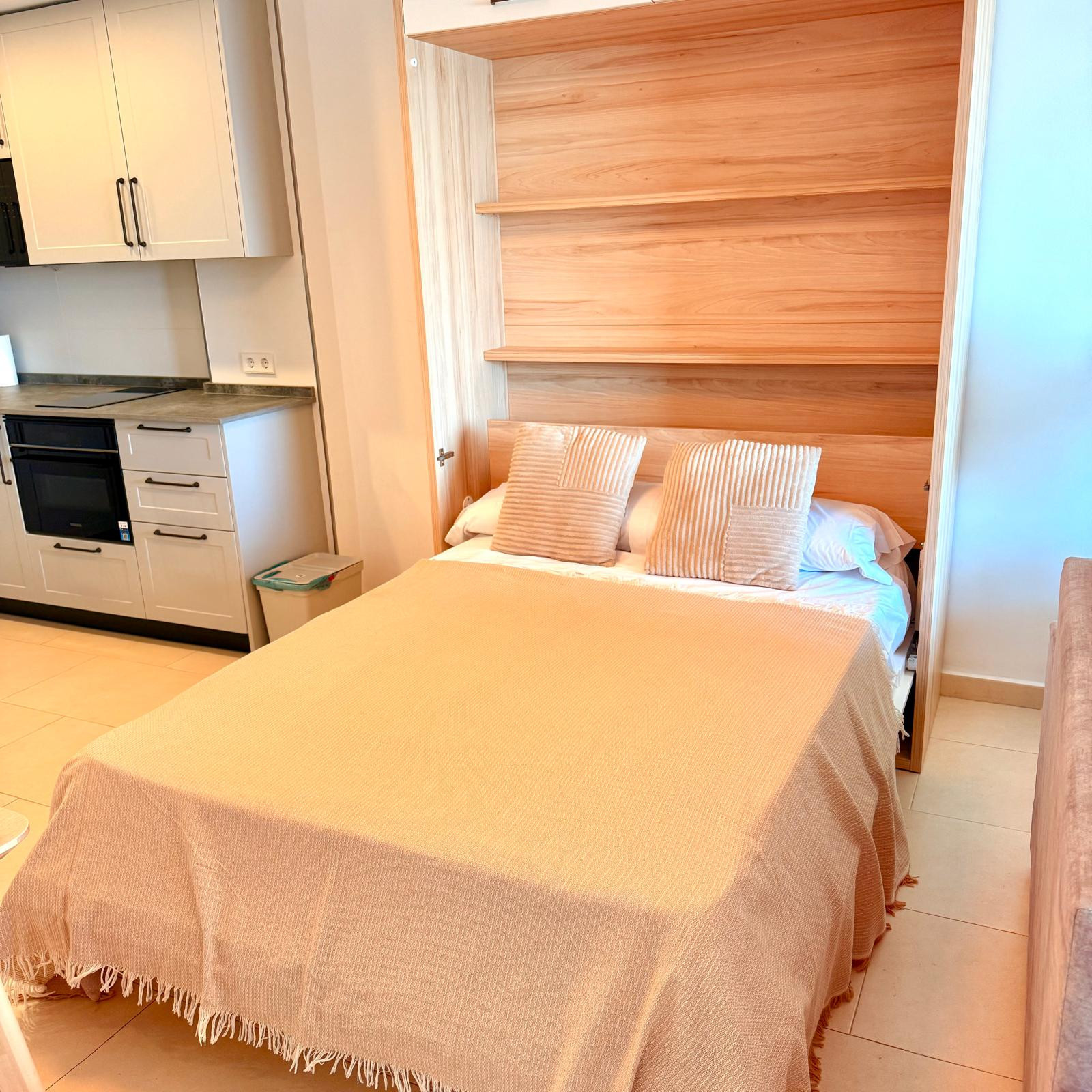Located at the front of this apartment is its spacious double bedroom with air conditioning, where you wake up to enjoy those impressive views. A large double wardrobe, and access to its terrace.