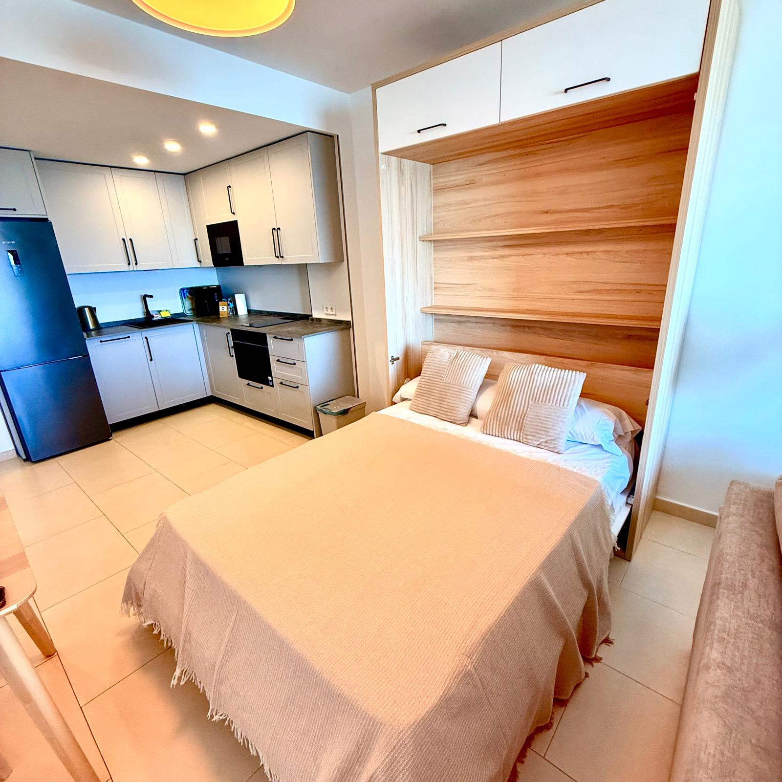 This recently modernised apartment has capacity for 4 people and is complemented by a large corner terrace facing southeast that has the most impressive views of Benalmádena beach. You can enjoy breakfast under the morning sun while enjoying the spectacular coastal views.