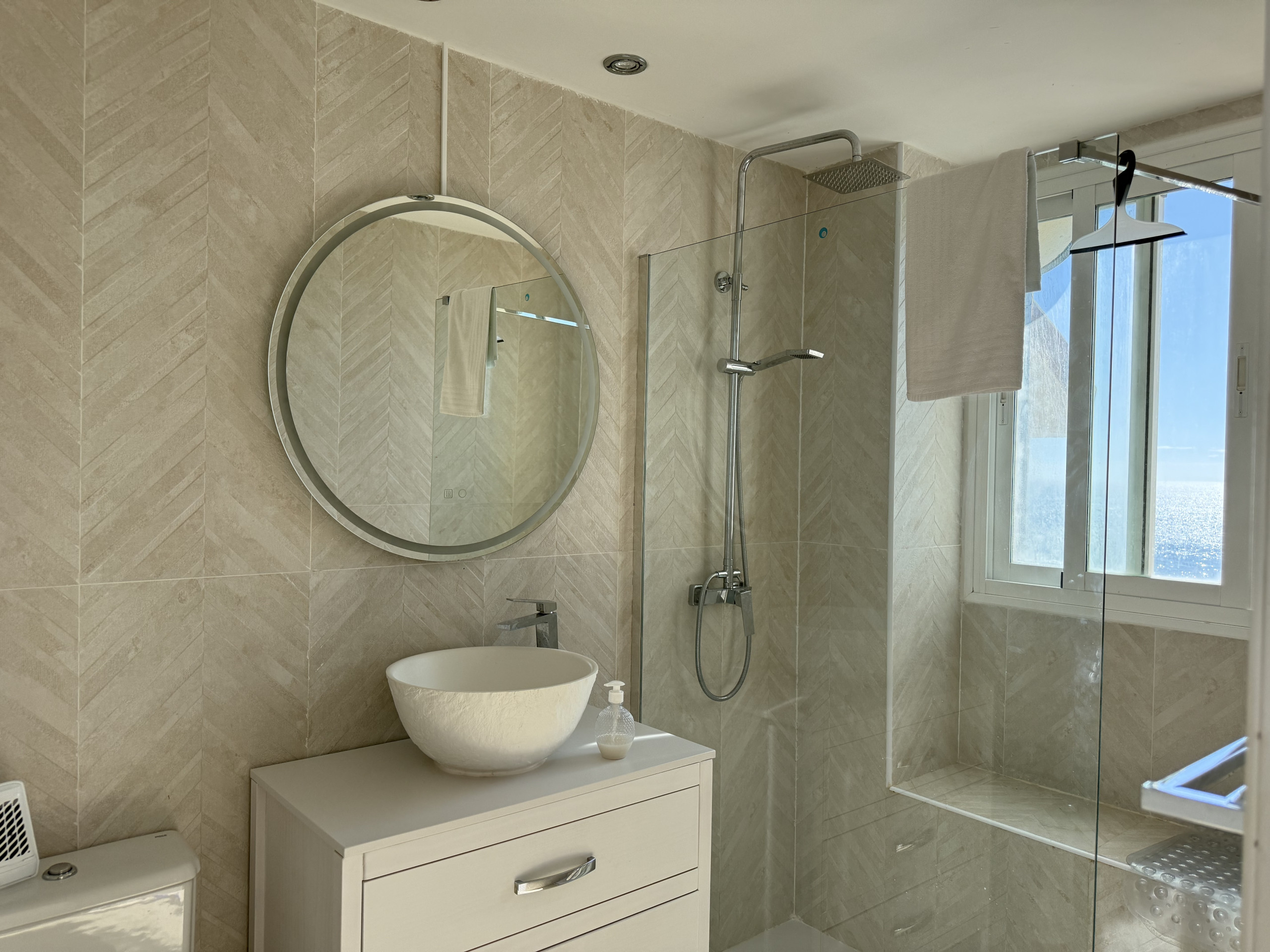 Large terrace with panoramic sea views and south-facing orientation (sunshine throughout the day)