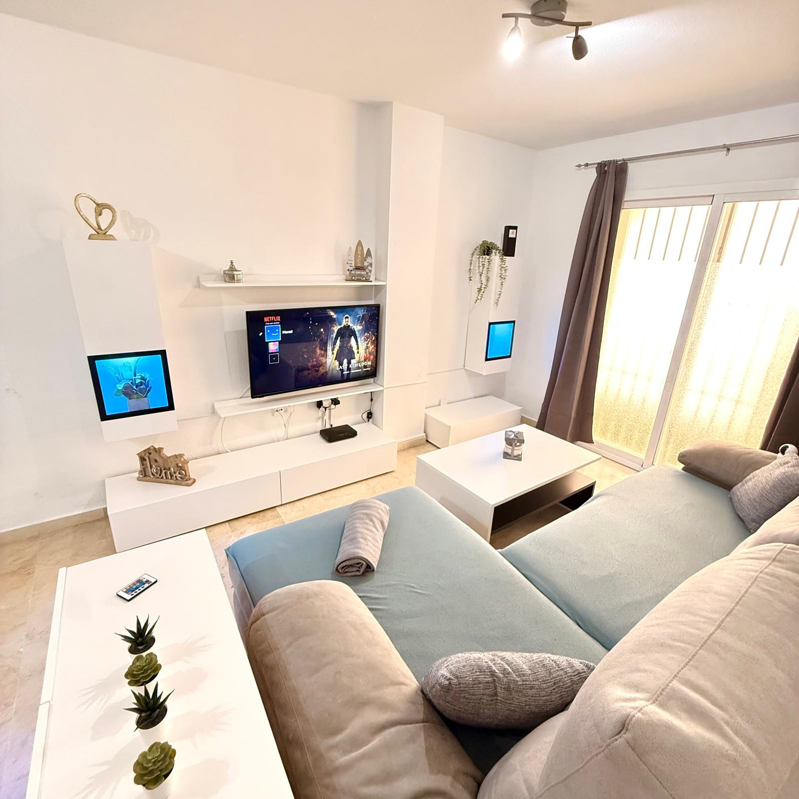 This recently modernized apartment has capacity for 4 people and is complemented by a large corner terrace facing southeast that has the most impressive views of the Benalmádena beach. You can enjoy breakfast under the morning sun while enjoying the spectacular views of the coast.