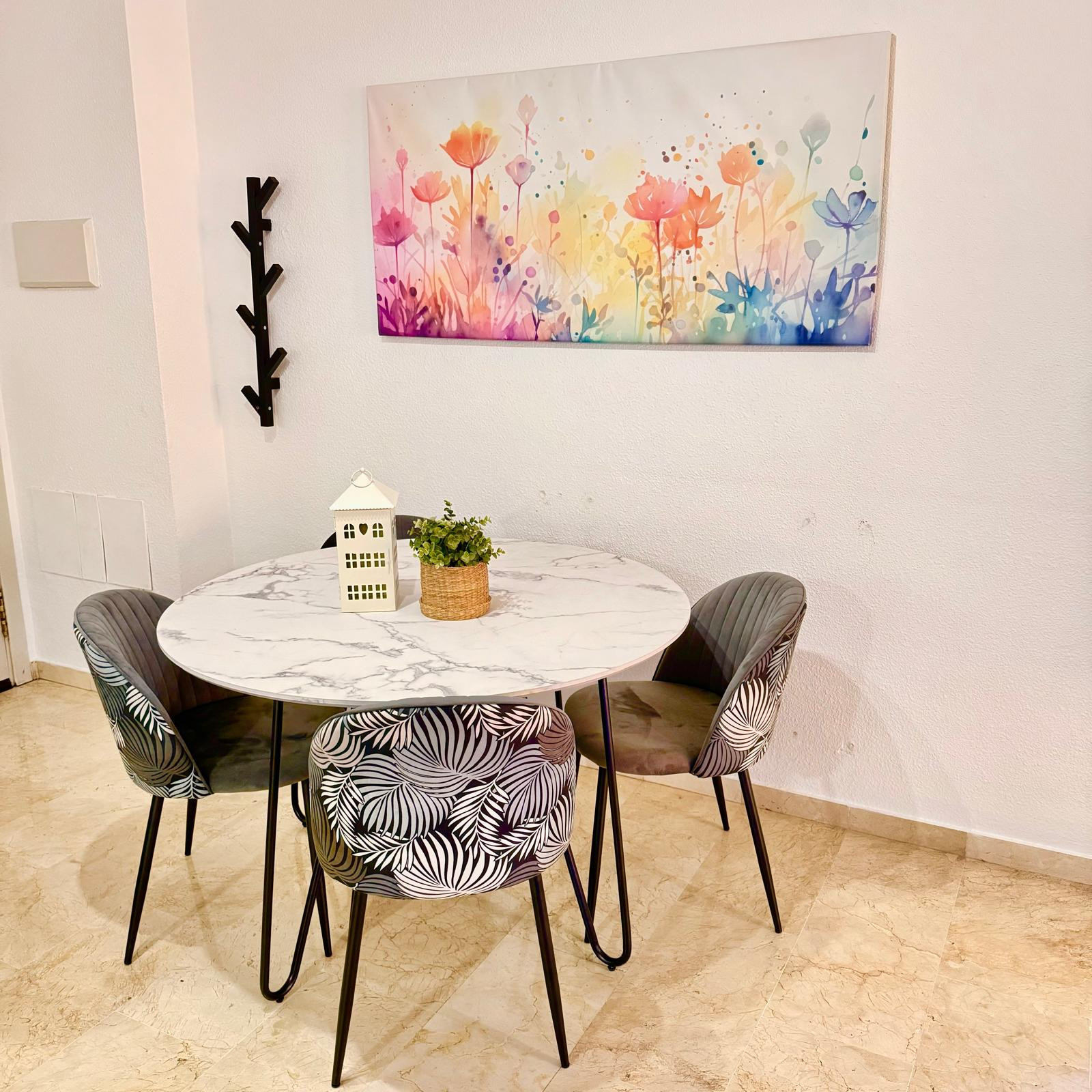 The train station for those arriving from the airport is located in the city center of Arroyo de la Miel, also a short drive away. Those vacationing in Benalmádena each year are likely to repeat bookings at this complex, this specific apartment is particularly interesting since there is no elevator in Pueblo Evita, the apartment benefits from being on the first floor, but having a spectacular open view of the town, mountain and sea.