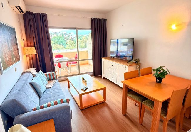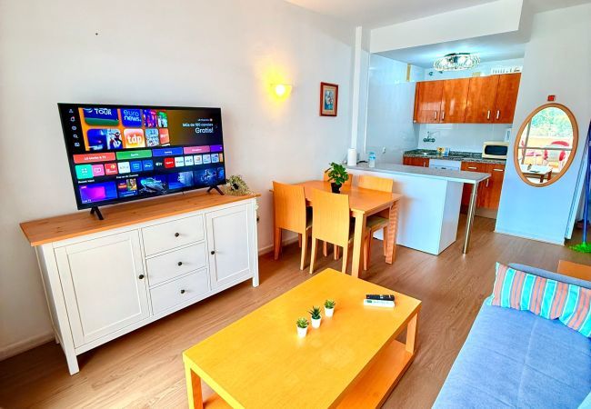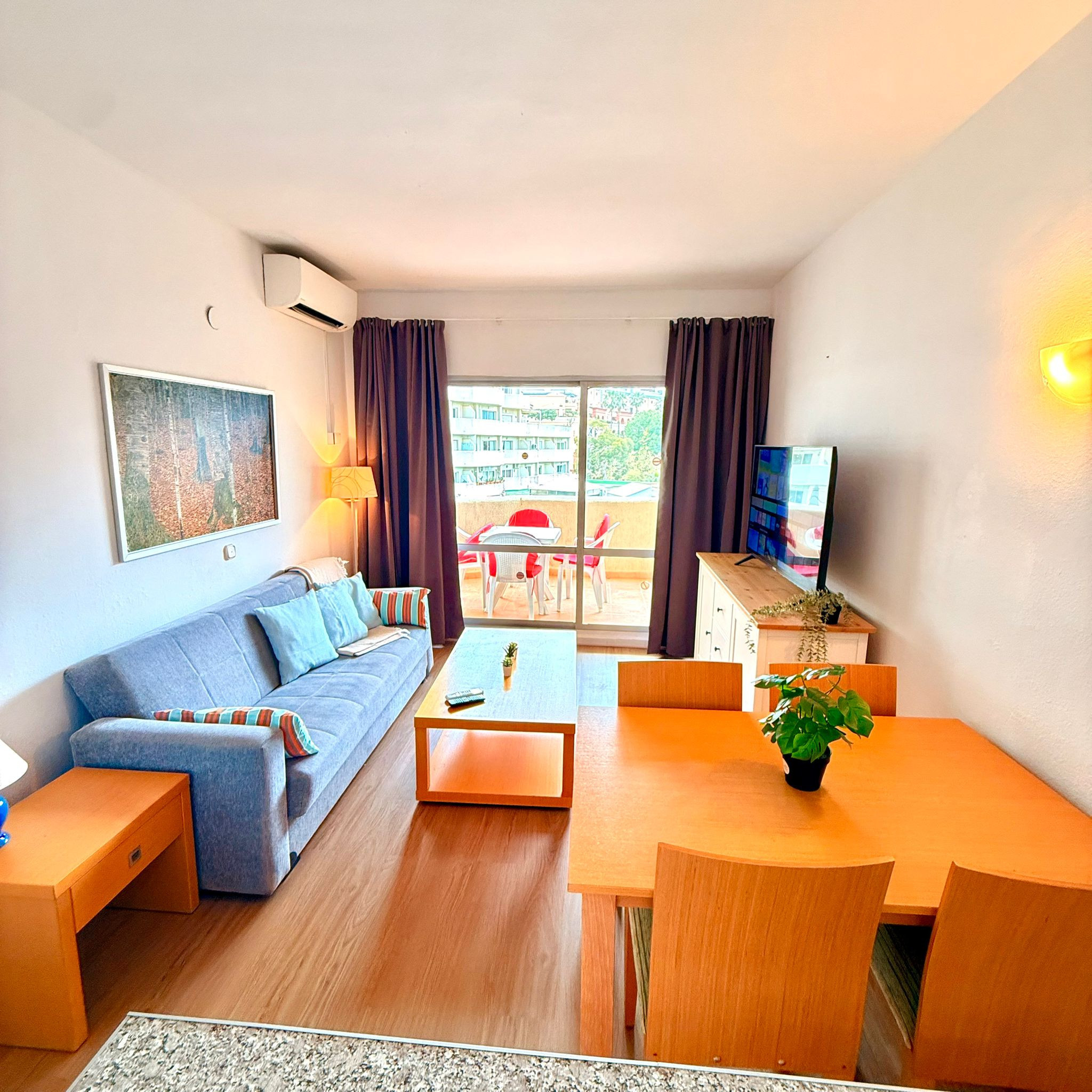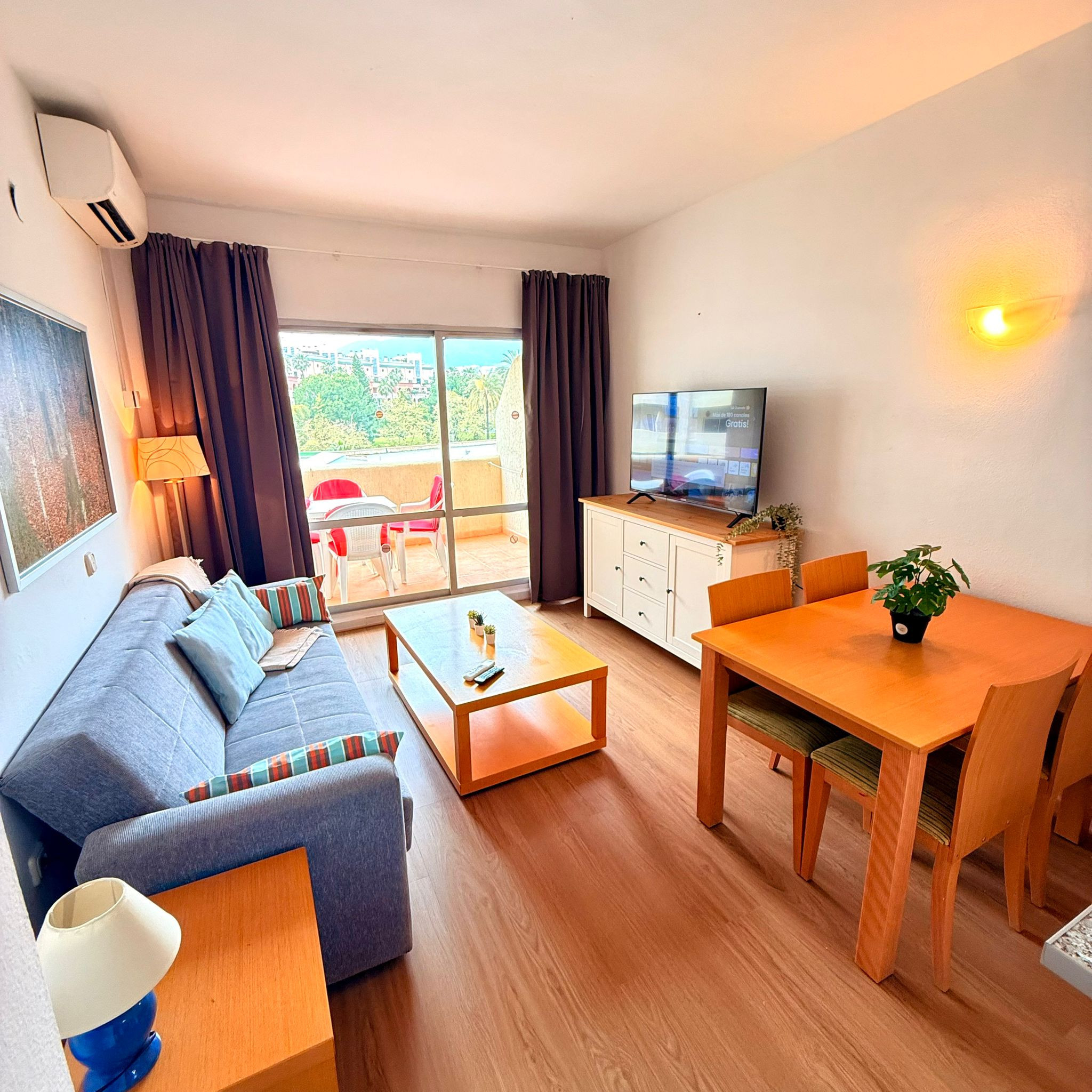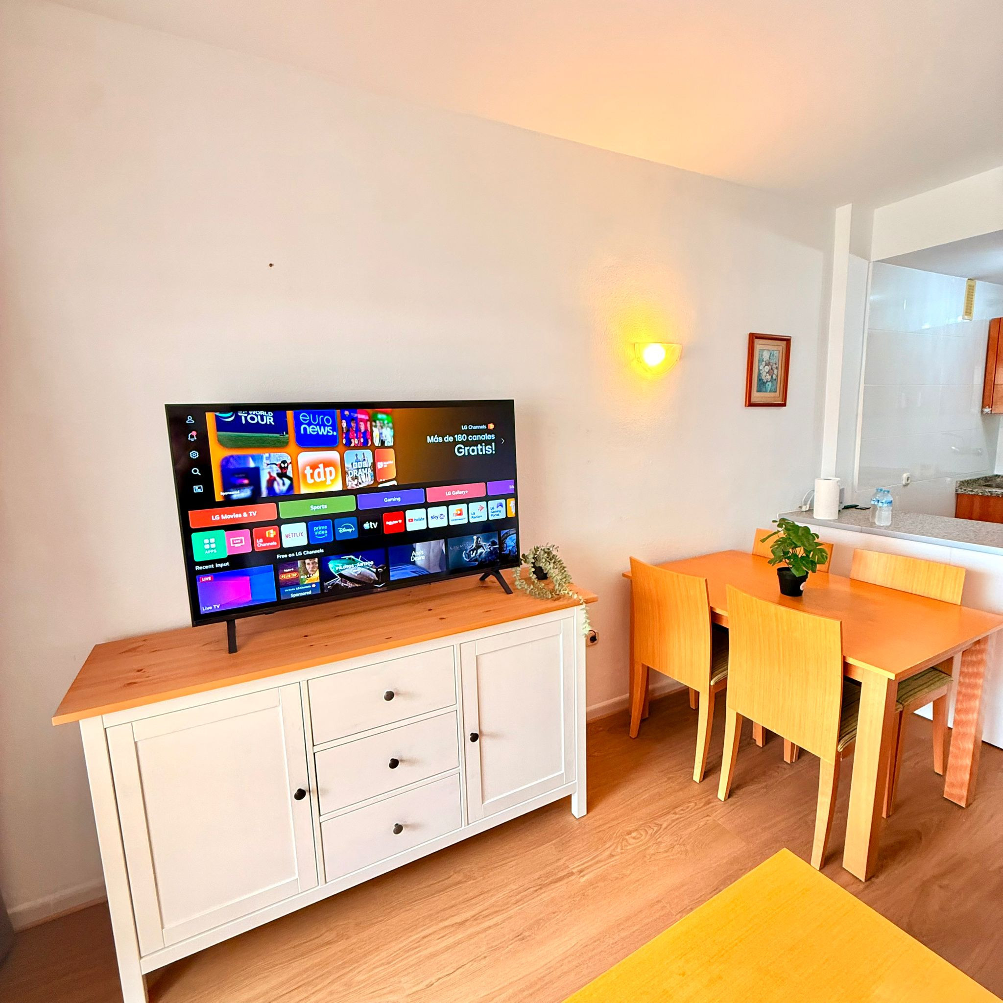 🔹 Living-dining room: Spacious and bright space, equipped with sofa, flat-screen television and dining table for four people. Direct access to the terrace through large sliding doors.