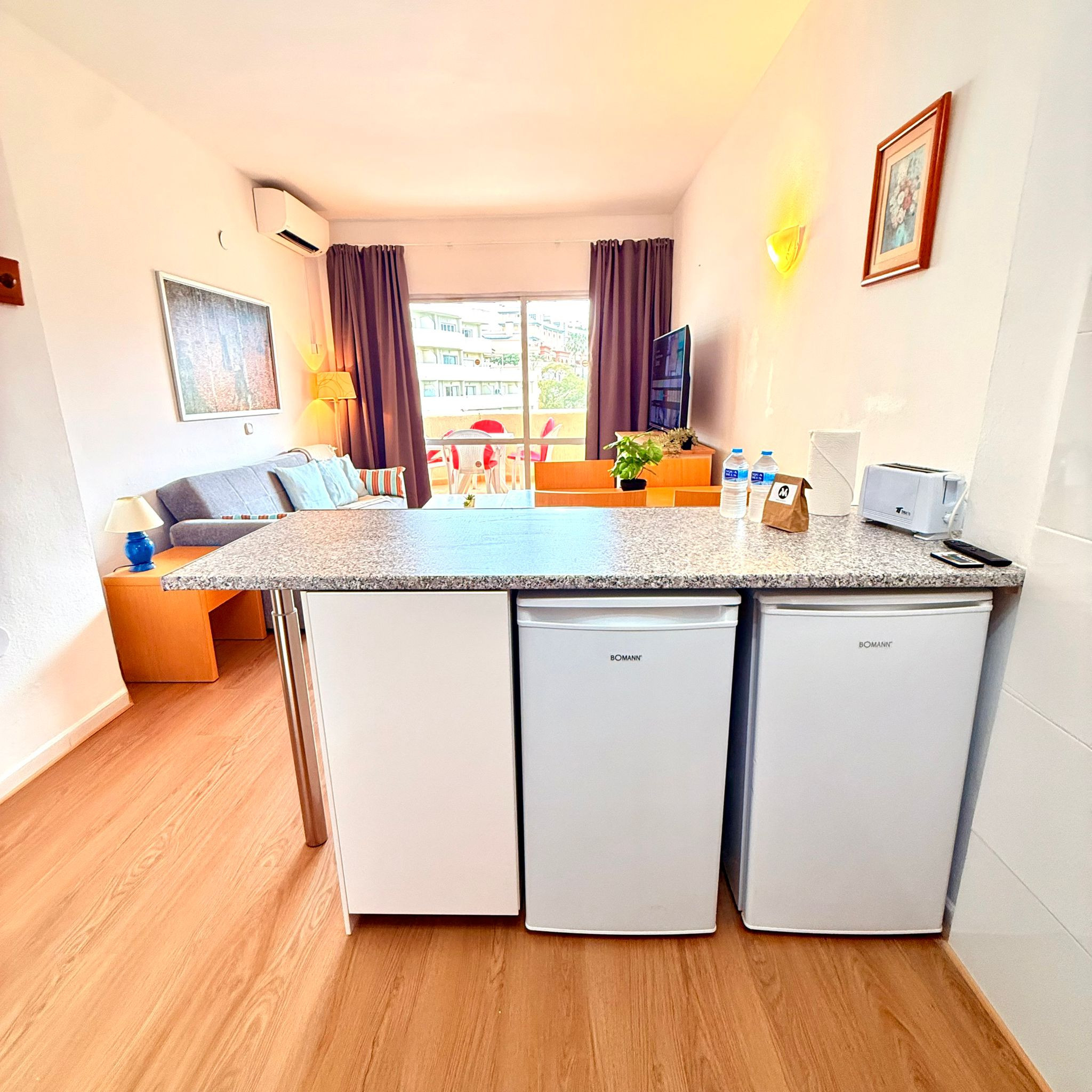 Full access to common areas such as the 5 pools with slides, gardens, sun loungers (for a fee), bar, pool bar, restaurant, game room, etc. There is also a supermarket located on the ground floor open from Monday to Sunday.