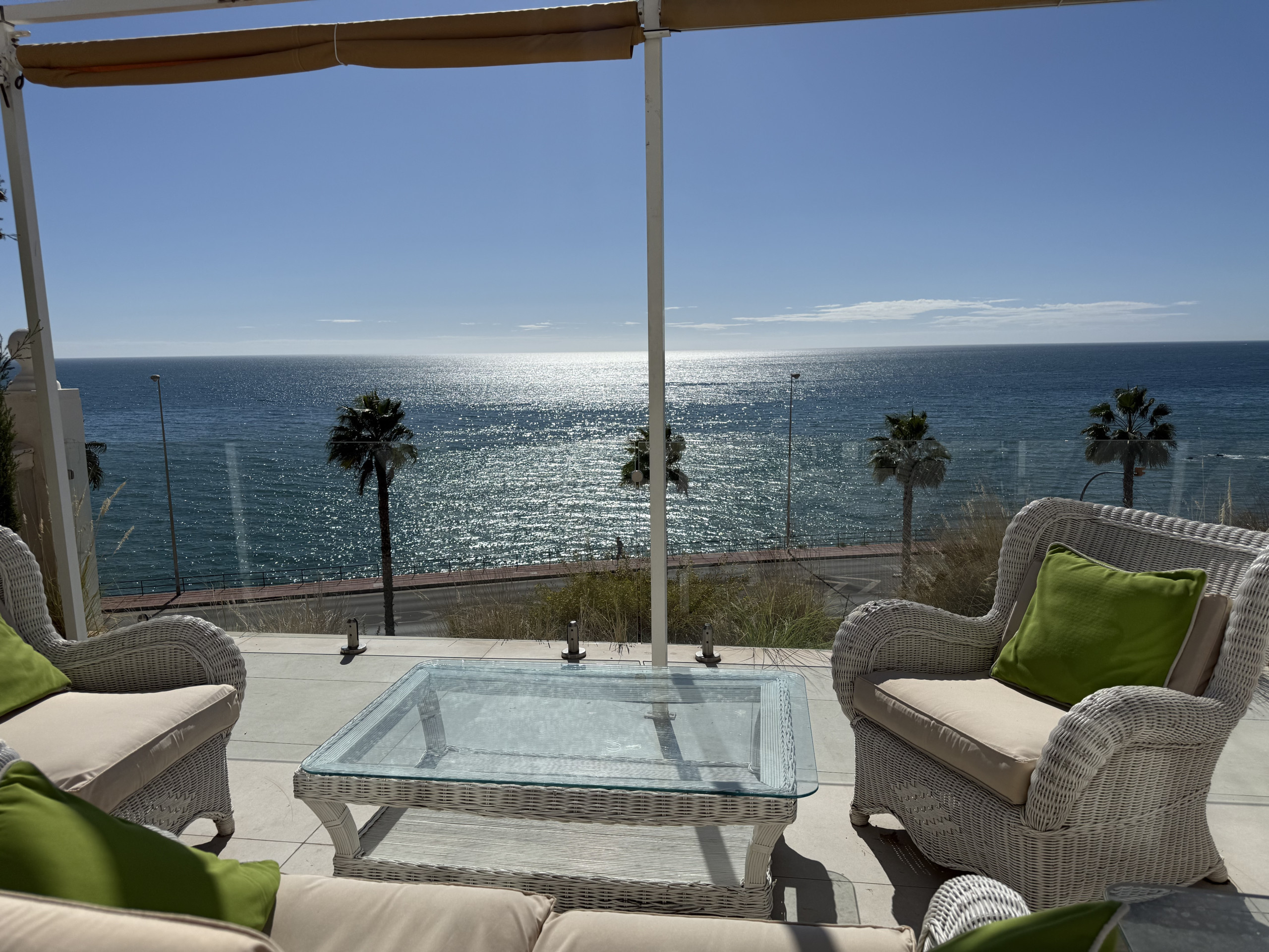 Enjoy the authentic essence of the Costa del Sol in this spectacular townhouse with front views of the Mediterranean Sea and a spacious south-facing terrace, perfect for relaxing in the sun or enjoying dinners at sunset with the sound of waves in the background.