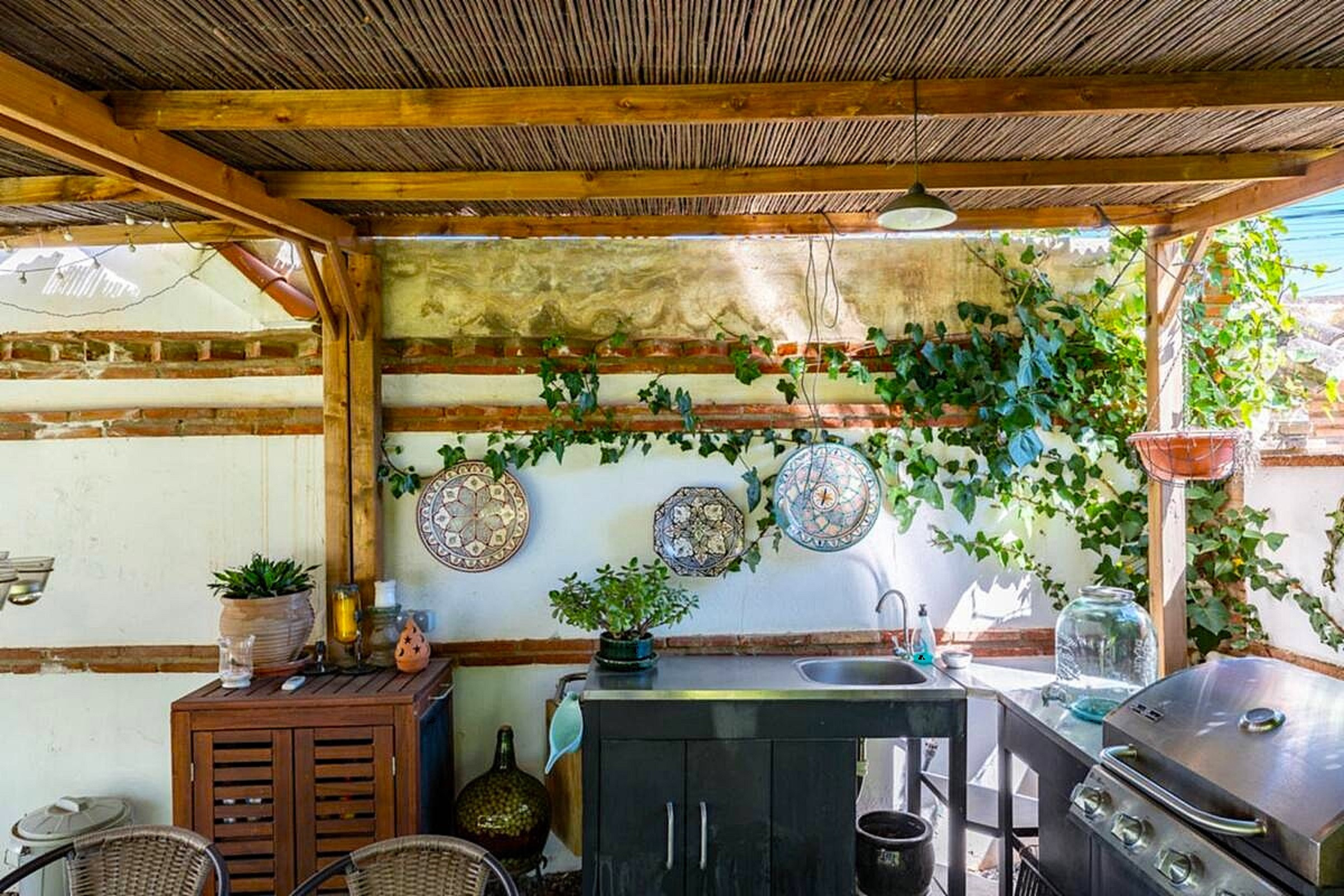 Step outside to discover a beautifully landscaped garden featuring a large summer kitchen. Equipped with a BBQ, sink, and ample counter space, it's the perfect spot for outdoor cooking and dining. Enjoy al fresco meals in the serene garden setting, surrounded by vibrant plants and the soothing sounds of nature.